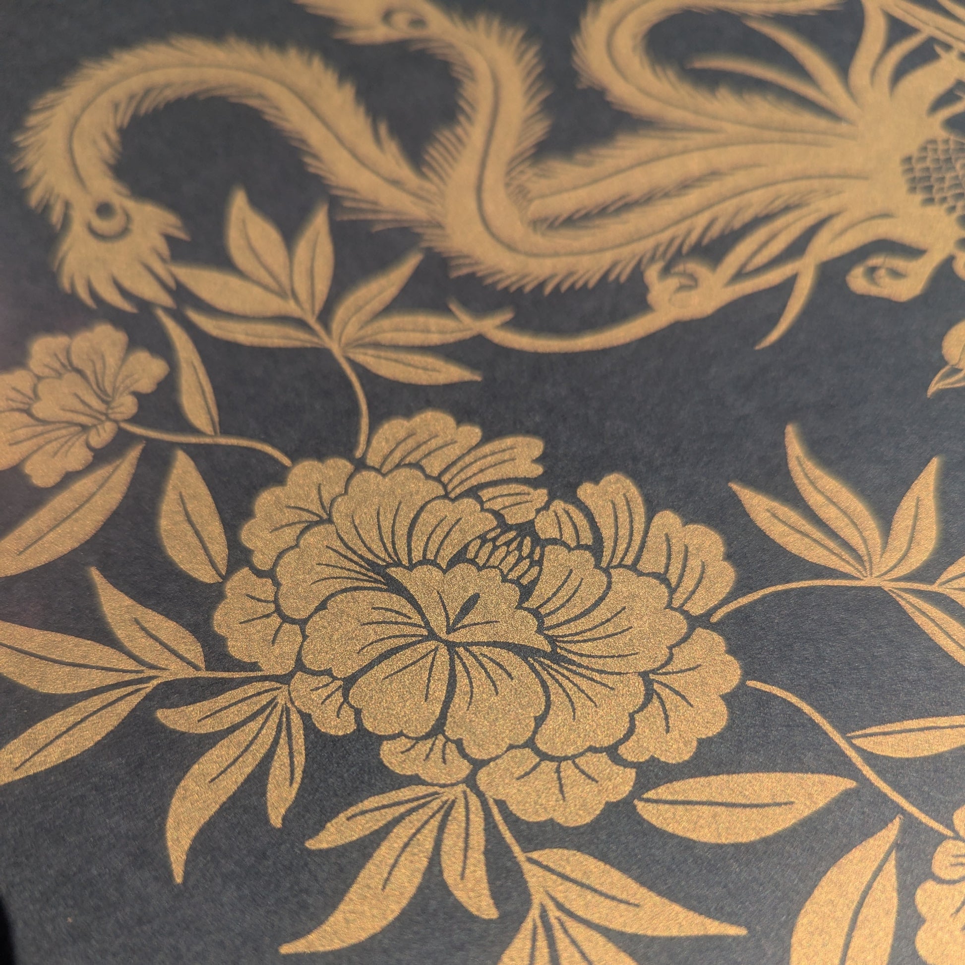 For now, I've decided to keep it to make COOL GOLD PRINTS on BLACK PAPER. This is a phoenix and peony blossom. Two very chinese motifs that I've grown up with.