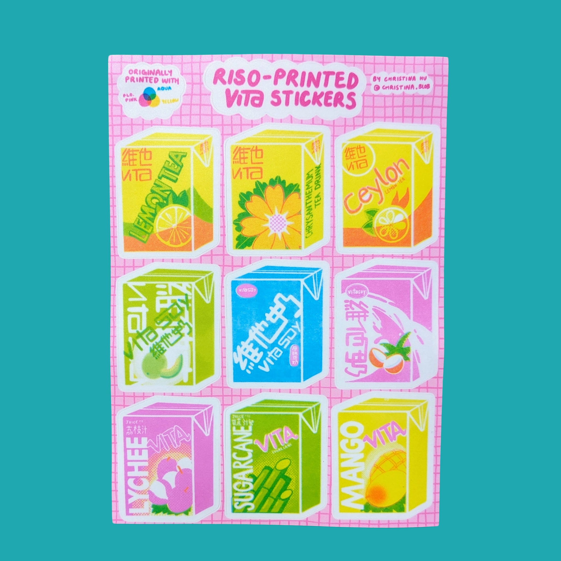 Vita Tea Risograph Sticker Sheet | 5"x7" Waterproof Vinyl